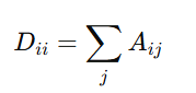 Mathematically, if A is the adjacency matrix, the degree matrix D is computed as: